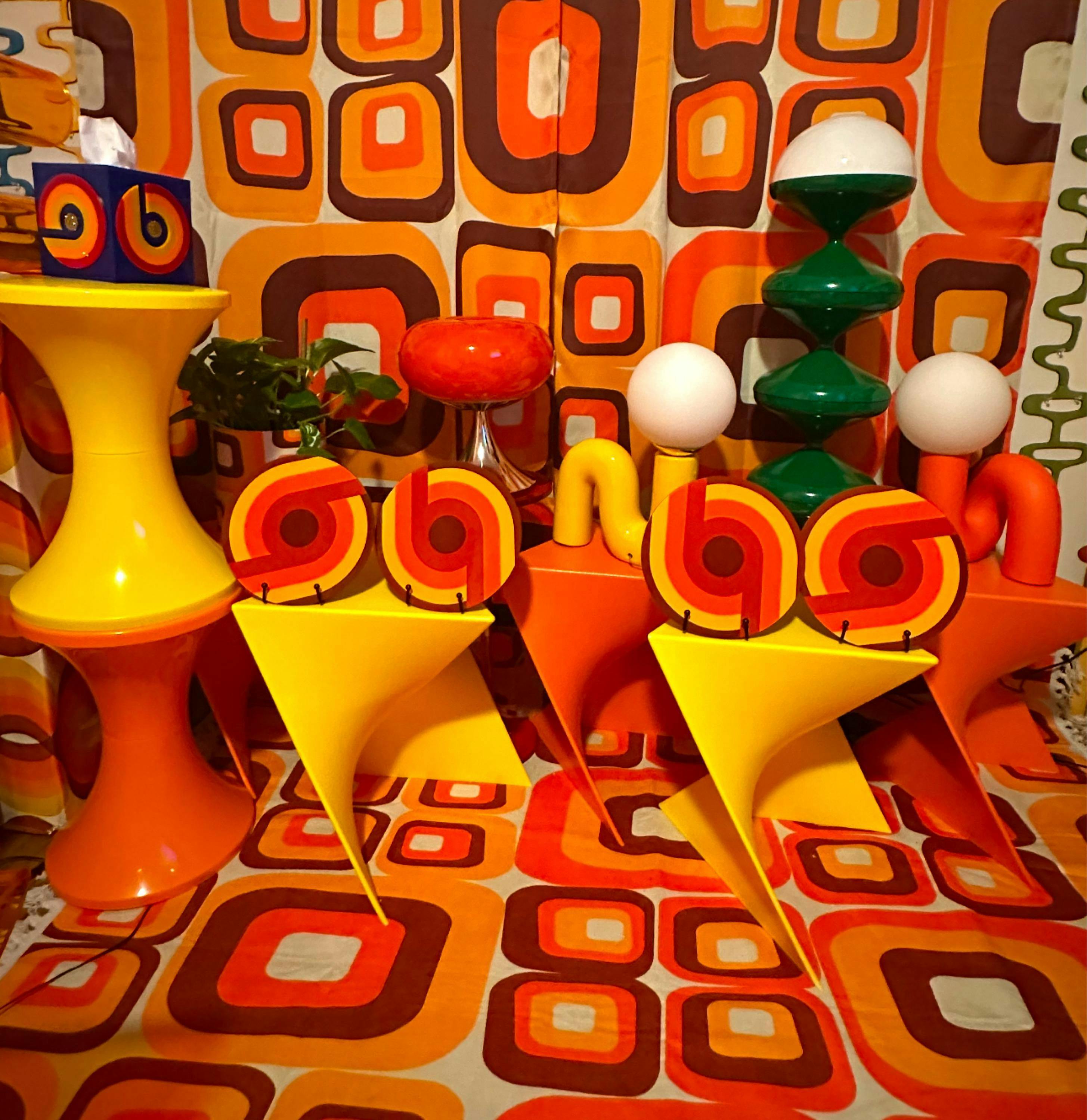 Go full-on funk at dinnertime with our 70s Supergraphic placemats. These high gloss, round placemats have big time retro attitude with their 1970s graphic style and bright colours. With matching coasters available, they can really make a statement on your table!