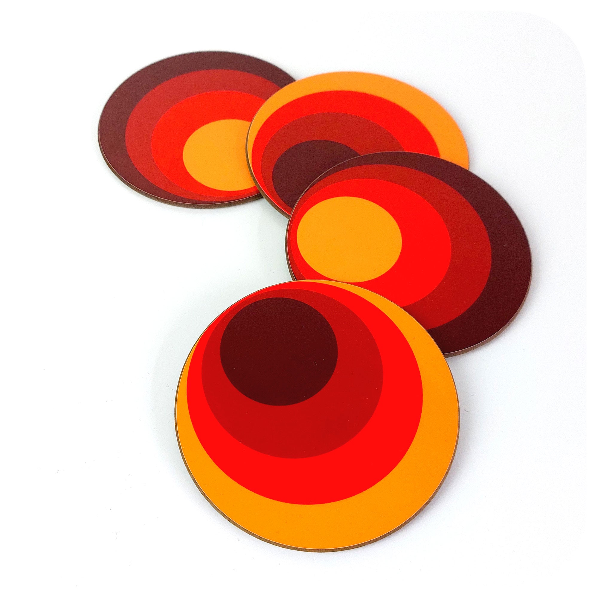 Go bold and brighten up your coffee table with these vibrant 60s style flower power coasters. High glossy with super saturated colours which really POP! ... these bad boys will really jump out and bring a happy smile to your face. Perfect for a bit of mid century maximalism! Matching placemats available.