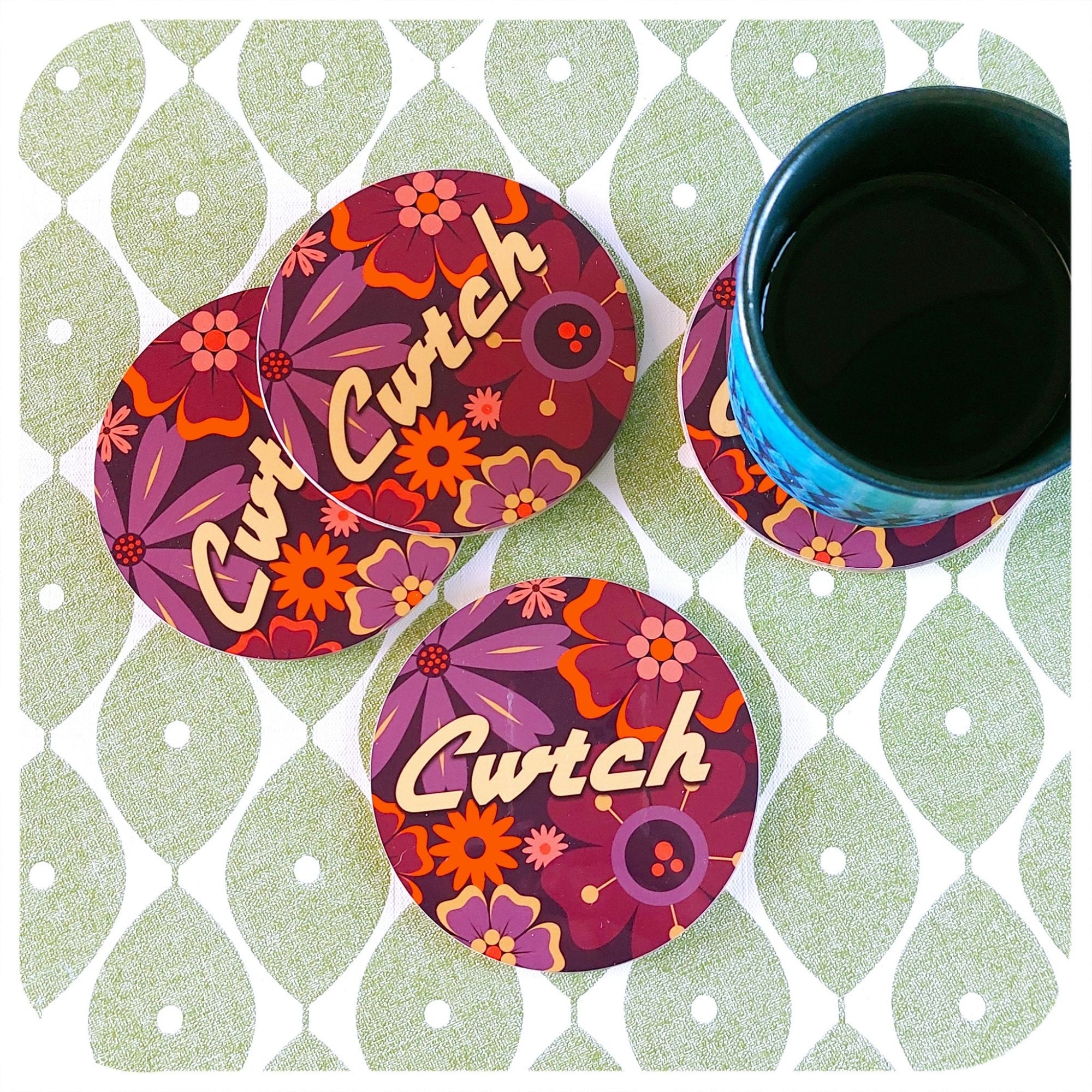 Feel cosy and cwtchy, and spread some snuggly welsh vibes, with our Cwtch Coasters. In full-on retro style, with a high gloss, hardwearing finish and super saturated colours these coasters make a fabulous gift for retro or vintage-loving Welshies!
